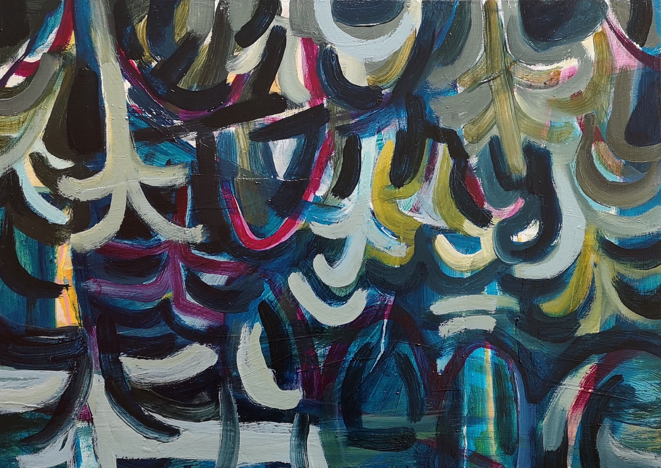 graphite, acrylic, emulsion and oil on board and acrylic glass 120 x 180 cms